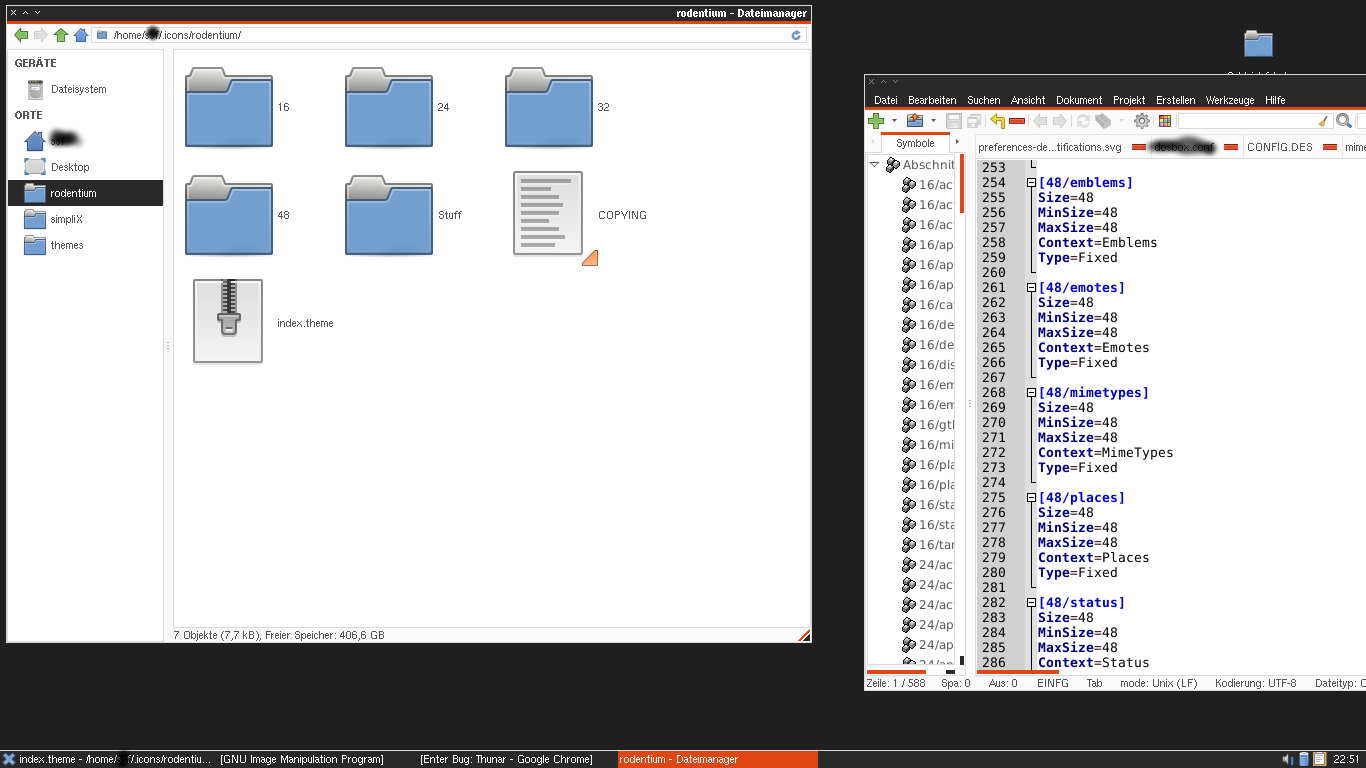 Created attachment 5154 eample 48px icons scaled to 128px http://standards.freedesktop.org/icon-theme-spec/icon-theme-spec-latest.html#file_formats If an svg icon theme includes fixed(directory key) icons thunar scales them up. I also tried to set the max size to 48px but thunar still scales them up to 256px. converting them to png solves the issue for me..
