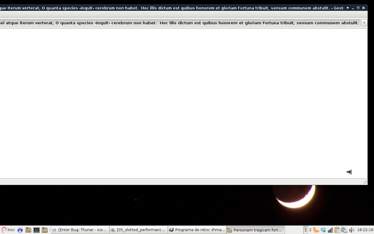 Created attachment 5193 Screen capture of a sadly unsuccessful attemp of shrinking Thunar window when folder with a very long name is open First of all, a folder with a long name is needed. Say, for instance: "Personam tragicam forte vulpes viderat; quam postquam huc illuc semel atque iterum verterat, O quanta species -inquit- cerebrum non habet. Hoc illis dictum est quibus honorem et gloriam Fortuna tribuit, sensum communem abstulit." Now I open Thunar and navigate to my home folder and resize the window to make it as narrow as possible. I make sure the "Path bar style" is activated in the menu*: View -> Location bar -> Path bar style and open the folder with the long name. Thunar window is horizontally resized so that the whole folder name fits in the "Path bar". This is, well, acceptable. Unfortunately, the folder name is so long that the window becomes wider than the screen resolution. And this is a big mess, because it can not be shrinked back. Furthermore, if I go back to the Home folder (ALT + LEFT arrow // ALT + UP arrow), the Home folder cannot be resized either. I must open another folder with a short name, and then I can resize properly. Suggestion: cutting the name of the folder in the "Path bar" to fit the window size would be better than resizing the window to the folder name. Thanks for your work!