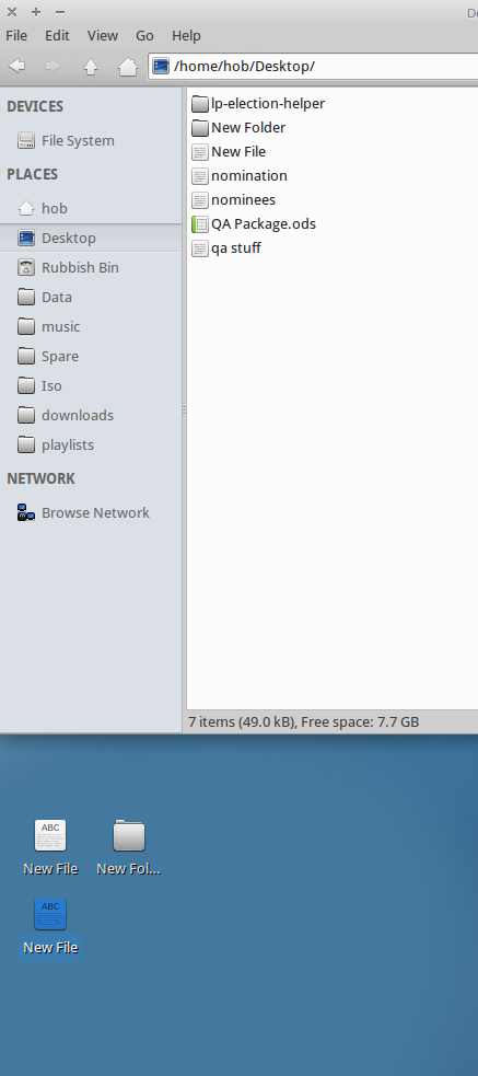 Close, but no cigar... works a treat unless you open the new folder before the drag and drop, in which case the behaviour is as before. viz: create the two new files and a new folder open the new folder drag one of the files in and it leaves a ghost copy on the desktop like before. ugh! many thanks to Thaddaus for the ppa and Eric for the fix. nice to have a working vol control again and very nearly a working file manager regards, Ian