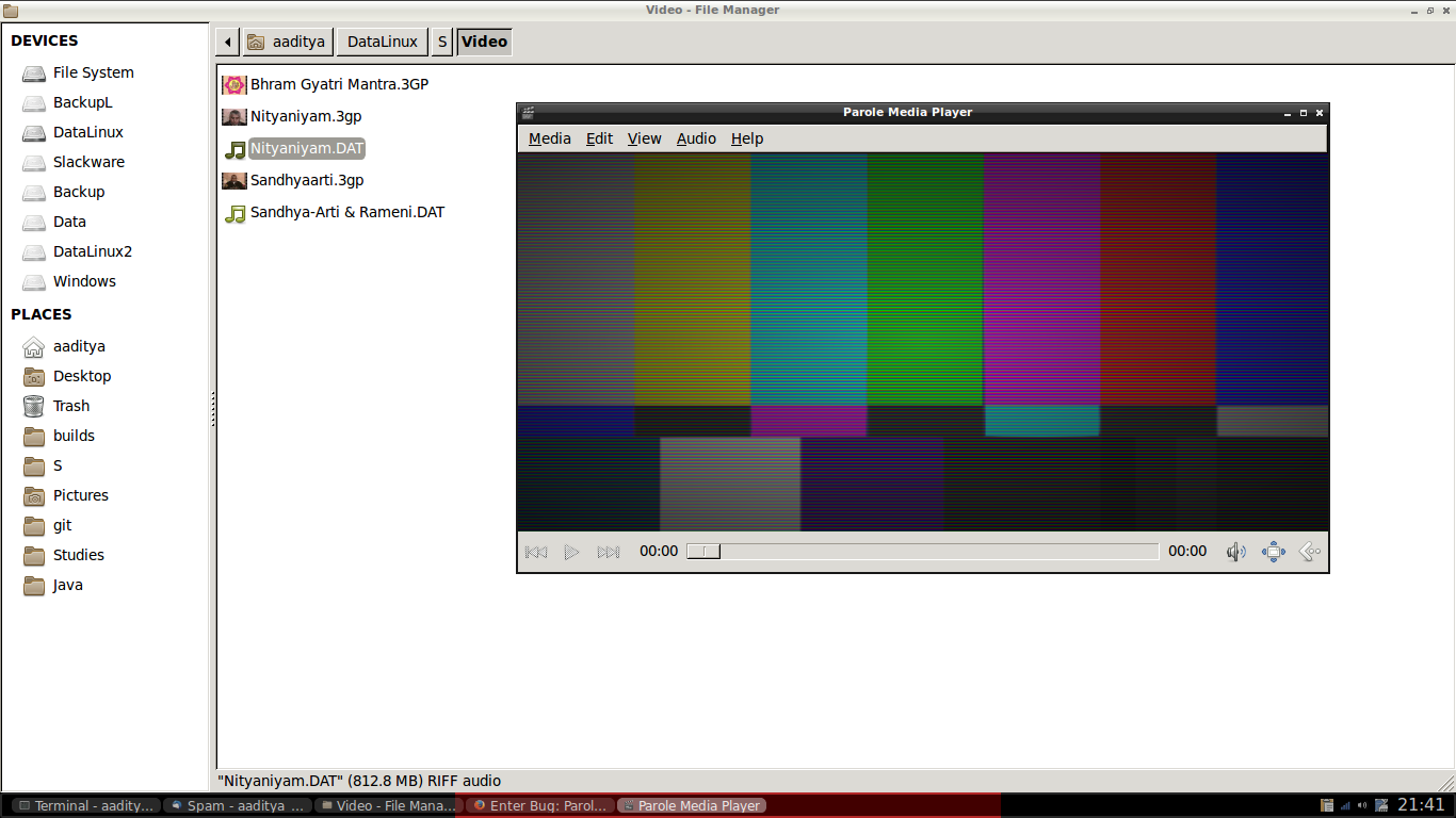 Hi, after I installed gst1-libav, I can play the .mp4 and the .3gp files with parole-0.6.1 (the gtk3 icons however are not being displayed correctly) But not the .dat file.