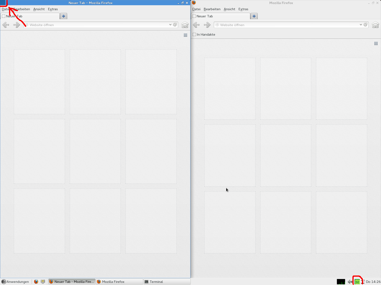 Hi, I have the same artifact on top left corner with SelekTOR java application. Here is a Screenshot: http://i.imgur.com/HRp66Yy.png $ lsb_release --all No LSB modules are available. Distributor ID: Ubuntu Description: Ubuntu 14.10 Release: 14.10 Codename: utopic $ dpkg -l | grep '^ii' | awk '{print $2 "\t" $3}' | grep "xfce" libxfce4ui-1-0 4.11.1-2ubuntu1 libxfce4ui-2-0 4.11.1-2ubuntu1 libxfce4ui-common 4.11.1-2ubuntu1 libxfce4ui-utils 4.11.1-2ubuntu1 libxfce4util-bin 4.10.1-2 libxfce4util-common 4.10.1-2 libxfce4util6 4.10.1-2 libxfcegui4-4 4.10.0-2 xfce4-appfinder 4.11.0-1 xfce4-artwork 0.1.1a~git+20110420-1 xfce4-cpugraph-plugin 1.0.5-1 xfce4-dict 0.7.0-1 xfce4-dockbarx-plugin 0.3.1-0~webupd8~utopic0 xfce4-indicator-plugin 2.3.2-0ubuntu2 xfce4-mailwatch-plugin 1.2.0-2 xfce4-netload-plugin 1.2.0-1 xfce4-notes 1.7.7-3ubuntu2 xfce4-notes-plugin 1.7.7-3ubuntu2 xfce4-notifyd 0.2.4-3 xfce4-panel 4.11.1-0ubuntu2 xfce4-places-plugin 1.6.0-1ubuntu1 xfce4-power-manager 1.4.1+git-0~1642~ubuntu14.10.1 xfce4-power-manager-data 1.4.1+git-0~1642~ubuntu14.10.1 xfce4-power-manager-plugins 1.4.1+git-0~1642~ubuntu14.10.1 xfce4-quicklauncher-plugin 1.9.4-10ubuntu1 xfce4-screenshooter 1.8.1-5 xfce4-sensors-plugin 1.2.5-2 xfce4-session 4.11.0-1ubuntu1 xfce4-settings 4.11.3+git-0~1882~ubuntu14.10.1 xfce4-systemload-plugin 1:1.1.1-2ubuntu1 xfce4-taskmanager 1.0.1-1 xfce4-terminal 0.6.3-1ubuntu1 xfce4-verve-plugin 1.0.0-2ubuntu1 xfce4-volumed 0.2.0-0ubuntu1 xfce4-weather-plugin 0.8.3-2 xfce4-whiskermenu-plugin 1.4.0-1ubuntu1 xfce4-windowck-plugin 0.3.0-0~eugenesan~trusty4 xfce4-xkb-plugin 1:0.7.0-0ubuntu2 It was also reported here: http://forum.xfce.org/viewtopic.php?id=7907