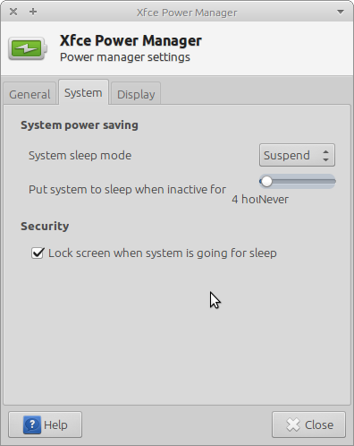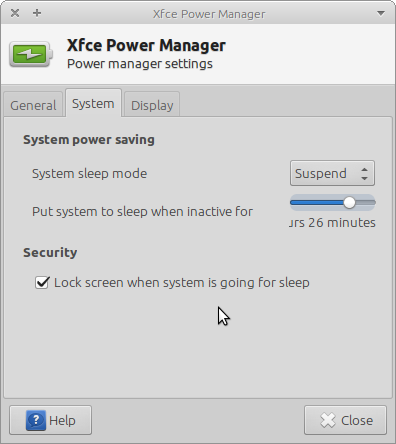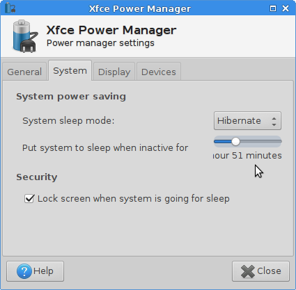 Created attachment 5624 screenshot 1 version 1.3.2 of power manager Open power manager to something other than Never - label fails to show the *whole* inactive time. Increase size of xfpm to be able to read label, then resize to default dialogue size and set time to Never and label is incomprehensible Screenshots attached.