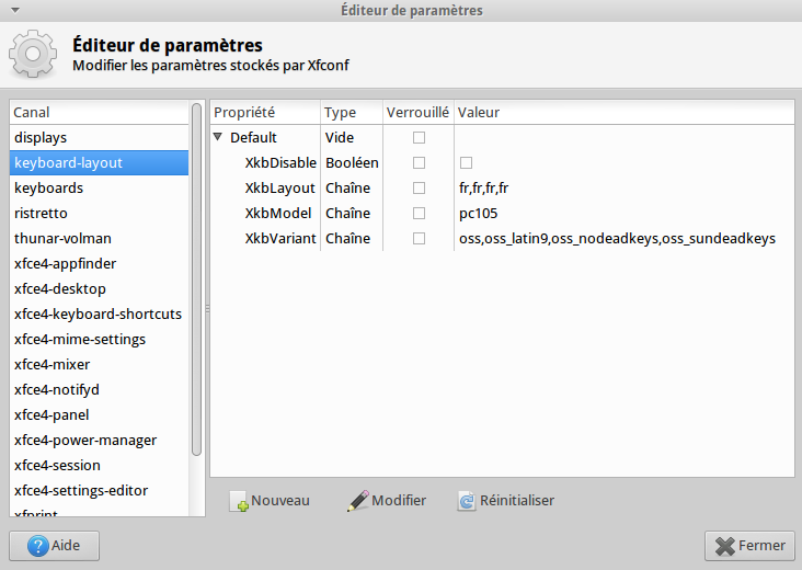 Created attachment 5689 screenshot of xfce4-settings-editor Explanation of the bug: ----------------------- I recently upgraded my xubuntu distribution from "quantal quetzal" to "trusty tahr". In quantal, I was using various shortcuts combinations based on the key "right_ctrl".They no longer work in trusty. If I use the same combinations with the "left_control" key, they do work. The keyboard configuration, I am using is : ------------------------------------------ Français (variante) which is also called oss (in xfce4-settings-editor) There are four types of oss configurations [xkb name in between brackets]: -------------------------------------------------------------------------- -français (variante) [oss] -français (variante, latin-9 uniquement) [oss_latin9] -français (variante, sans touche morte) [oss_nodeadkeys] -français (variante, touches mortes sun) [oss_sundeadkeys] I tried all of them. The Right_ctrl key no longer works in any of them. (They were working in quantal). This is not the case when I switch to another keyboard configuration such as Français (variante obsolète) [Latin9] Packages versions ---------------- xfce4-settings: 4.11.2-1ubuntu2 (trusty) xfce4-xkb-plugin: 1:0.7.0-0ubuntu2 (trusty) xfce4-settings: 4.10.0-1ubuntu2 (quantal) xfce4-xkb-plugin: 0.5.4.3-1ubuntu3 (quantal)