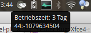 Created attachment 5758 screenshot of the broken tooltip with the german translation. The plugin's tooltip is broken. I am using the german translation. It shows the hours and minutes. Yet the tooltip says (translated back to english) "3 days 44:-1079634504". So it is not only using the wrong units, but also displaying this large negative number instead of something meaningful. I am using xfce4-systemload-plugin in version 1.1.1 from the normal ubuntu package sources.