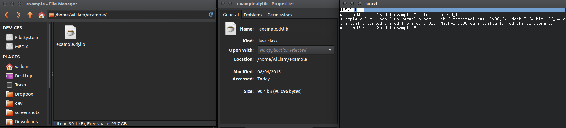 Created attachment 6487 An image of the incorrect icon and description, along with the output of `file`. Hello, On Thunar 1.6.3 (and possibly previous/later versions), Mach-O files are given the Java icon and 'Java class' description under 'Kind' in Properties. Mach-O files do share some of the same magic numbers as Java classfiles (specifically 0xcafebabe), but are easily distinguishable by parsing a few bytes further into the header. This isn't a major issue, just a cosmetic mistake I noticed while looking at OS X binaries on a Linux distribution. If this is being caused by something upsteam (I don't know where/how Thunar gets its icons), please point me to the upstream source and I'll file a bug with them instead. Best regards, William Woodruff