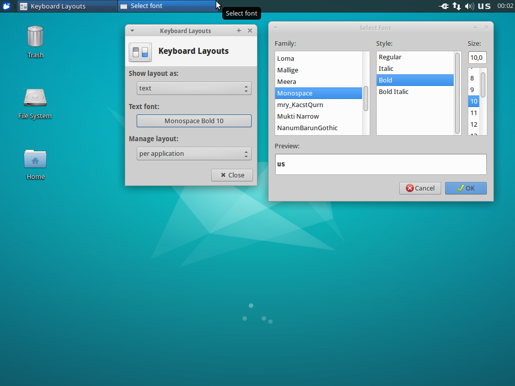 Created attachment 6490 Font size in preview differs from font size in panel After switching "Show layout as" option to "text", changing font size doesn't work. Keyboard layout text in keyboard indicator always remains stretched.