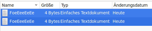 When I played around renaming a file to trigger ( https://bugzilla.xfce.org/show_bug.cgi?id=12264 ) it happened several times that Thunar renamed the file and created a virtual clone in the list view. It had the same name and editing one of the files changed both. Renaming it again lets the clone disappear. Actually it does not really exists as a file: Another instance of Thunar won't display it and it cannot be found by the terminal.