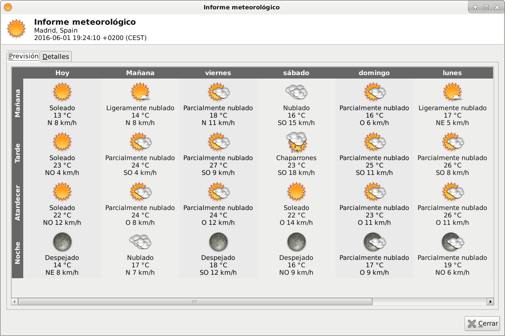 Created attachment 6687 Screenshot of the problem When weather report is larger than default setting (for instance, with 8 days in columns), window size isn't adjusted to fit the whole report. Instead the report is clipped on the right side and scrolling must be performed unless the user adjusts window size. I understand with GTK+ containers it is trivial to make the window fit the whole report if the window fits in the screen.