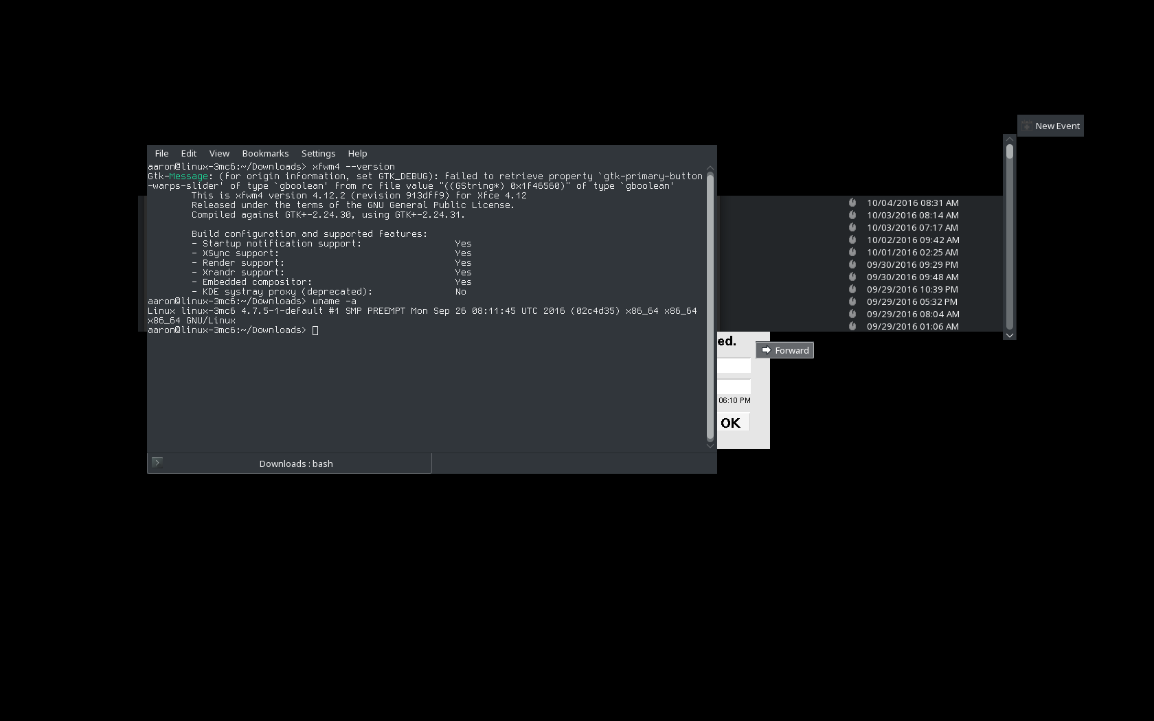 Created attachment 6872 Screenshot of bug in action. Parts of Konsole and Thunderbird have redrawn. Hello. I've had this issue for quite a while now. Every so often (I've managed to track it down to when I minimize Firefox) the contents of my screen will be overwritten with something that was on my screen before. When things redraw, they'll redraw over this restored buffer, but usually it'll quickly revert to the bad buffer. Typically this buffer is just the Xscreensaver lock screen, but sometimes it's something I was working on any time from a few minutes ago to a few hours ago. It's all very random and sporadic, from the contents of this buffer to when it appears and how frequently it redraws. (For instance, sometimes it reverts to the bad buffer after about 30 seconds, but other times it reverts almost instantly, making the computer almost unusable.) In the screenshot, despite triggering this bug at ~7:19 PM, the screenshot shows an Xscreensaver time of 6:10 PM. I am running xfwm 4.12.2 on OpenSUSE Tumbleweed (Linux linux-3mc6 4.7.5-1-default #1 SMP PREEMPT Mon Sep 26 08:11:45 UTC 2016 (02c4d35) x86_64 x86_64 x86_64 GNU/Linux) using the nouveau drivers with a Nvidia Quadro 2800M (NV92). This issue does not occur with KDE Plasma 5.x or icewm.