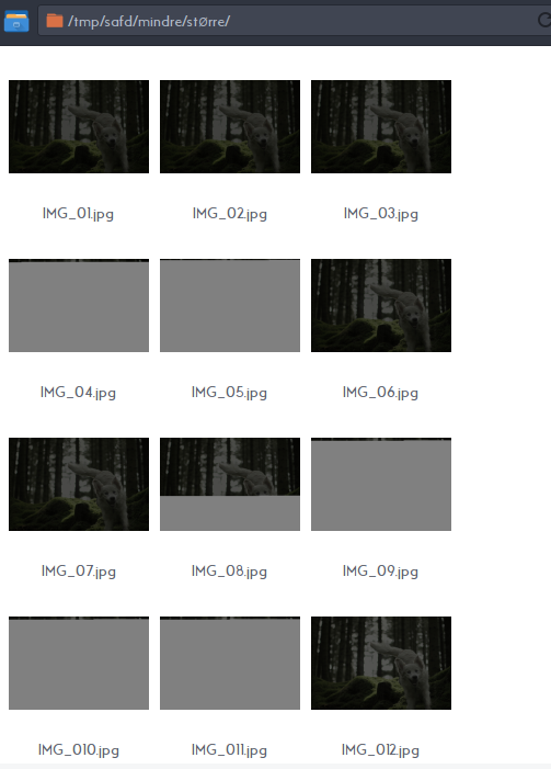Created attachment 6886 screenshot On Xubuntu 16.04, tumbler 0.1.31-2build2, if I have a folder full of jpg's and do e.g. mkdir converted for i in *.jpg; do convert -blue-shift 1 "$i" "converted/$i";done & Thunar converted and then navigate out of the folder and into the folder as the images are being written, I get lots of half-gray thumbnails. These are not refreshed on hitting F5 or the twisty icon in the url field. See screenshot.
