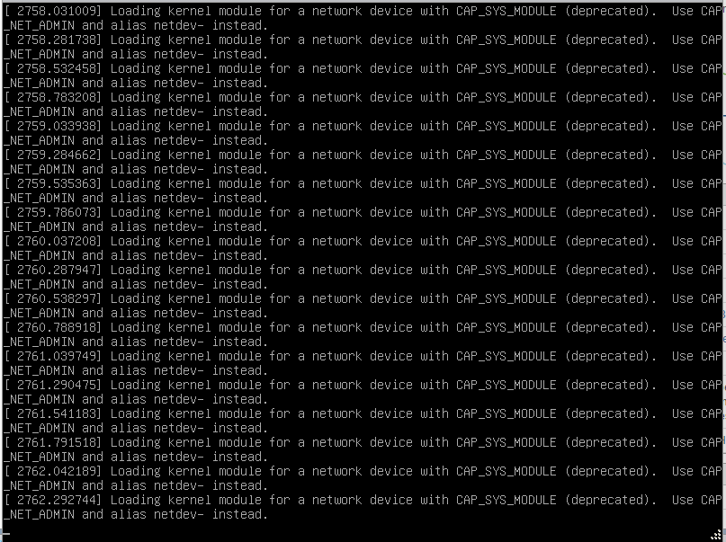 Created attachment 6938 Shows the described error When the xfce4-netload-plugin is loaded for example when I login, the virtual consoles and syslog are flooded with the following error: "loading kernel module for a network device with cap_sys_module (deprecated). use cap_net_admin and alias netdev- instead after login" When I remove the plugin from panel, the error messages stop. I attached a screenshot of tty1 with the described errors.