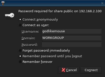 Created attachment 6959 Thunar Credentials Dialog Using Thunar, if the user accesses a file share or mount that requires credentials the credentials dialog is presented with the following options: "Password required for share XXXX on YYYYYY" - Connect anonymnously - Connect as user: - Forget password immediately - Remember password until you logout - Remember forever When the "Remember forever" options is selected and the volume/share is connected to. It only lasts for the user session. Upon logging out or session termination, the same share will bring up the credentials prompt once again.