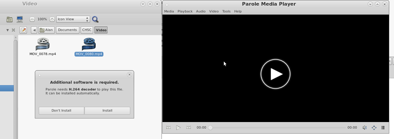 Created attachment 6967 Screen shot Parole needs H.264 decoder to play this file. It can be installed automatically. Pressing the <Install> button fails