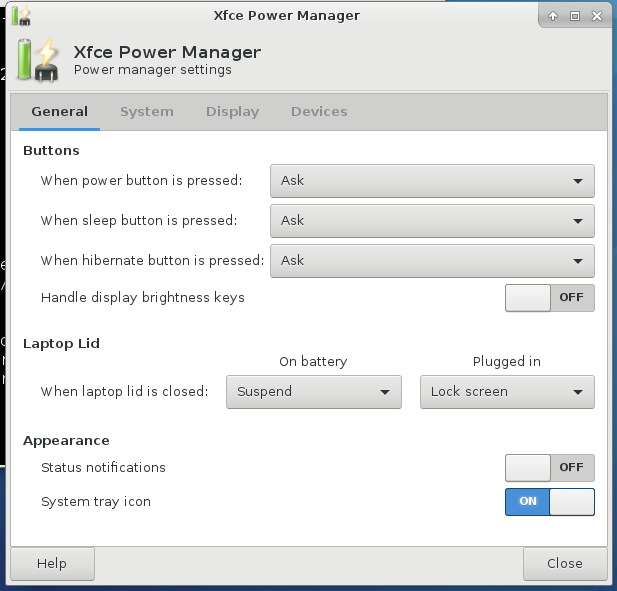 -- GitLab Migration Automatic Message -- This bug has been migrated to xfce.org's GitLab instance and has been closed from further activity. You can subscribe and participate further through the new bug through this link to our GitLab instance: https://gitlab.xfce.org/xfce/xfce4-power-manager/-/issues/25. Please create an account or use an existing account on one of our supported OAuth providers. If you want to fork to submit patches and merge requests please continue reading here: https://docs.xfce.org/contribute/dev/git/start#gitlab_forks_and_merge_requests Also feel free to reach out to us on the mailing list https://mail.xfce.org/mailman/listinfo/xfce4-dev