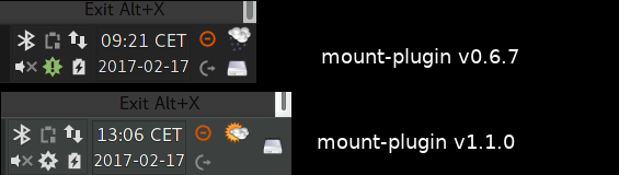 Sorry for the late replay. I agree that it's subjective which way is better. That's why some plugins provide an option, named "Use a single panel row" or "Keep compact". However, the fixed version 1.1.1 works for me. And it's already in Arch: https://www.archlinux.org/packages/extra/x86_64/xfce4-mount-plugin/ Thanks.