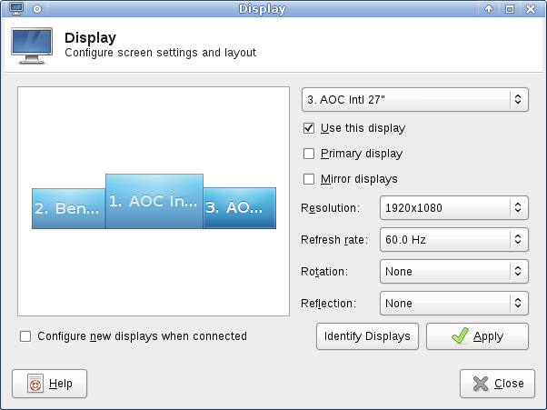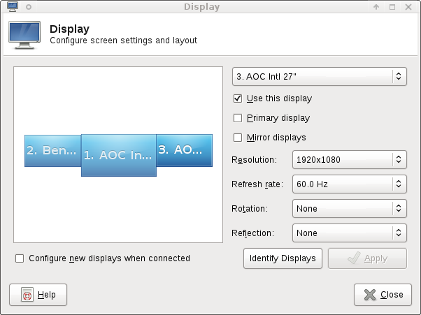 Created attachment 7045 desktop icons are placed in the upper right corner, outside visible area Using 3 monitors with 1080p 1440p 1080p some desktop icons are outside the visible screen area when configuring the monitors xXx in the desktop app. Using the same configuration with the monitors like "X" works just fine. It is probably unclear what I mean so I'll up it another way. If the top of the right monitor is aligned with the top of the middle monitor then desktop icons show up just fine. If the bottom of the left monitor is aligned with the bottom of the middle monitor then desktop icons are placed outside the visible area. A solution is obviously to align all the monitors with the top line and not the bottom.