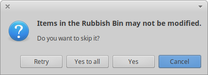 Retry - this option restores the folder to it's source, but respawns the warning dialogue Cancel - restores the folder to source Skip all/Skip - restores the folder to source
