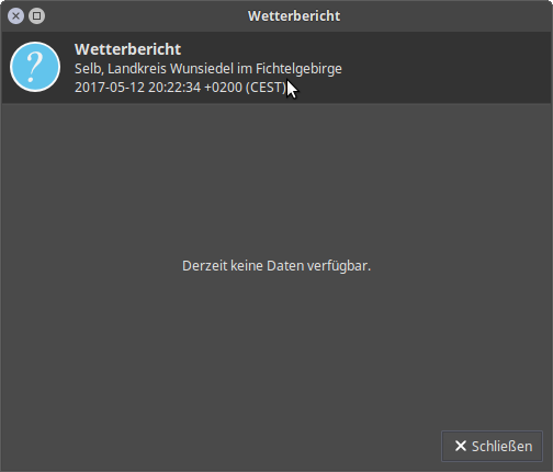 Created attachment 7106 plugin Ver 0.8.6 The plugin does not show any weather Data plugin Ver 0.8.6 BS Version Xubuntu 16.04.2 LTS