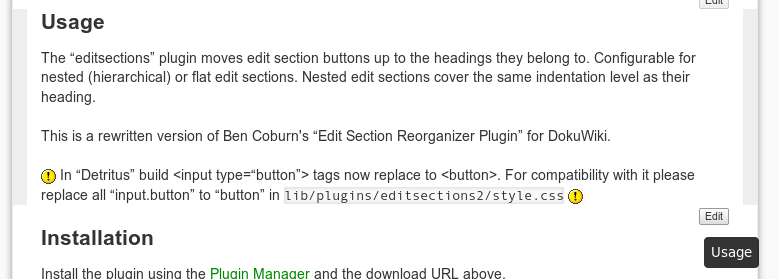Created attachment 7356 Edit button on the left side These buttons by default are placed on the right side, I think for a good reason (see the screenshots). Also, they used to highlight the respective section on hover.