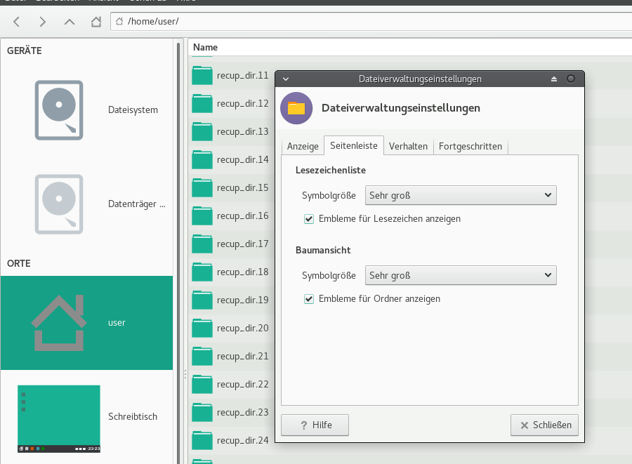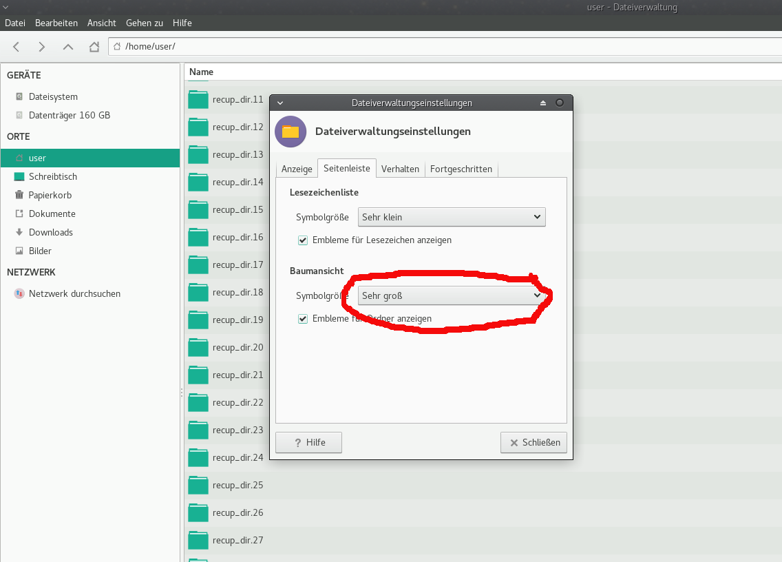 Hi, as you can see the bookmark in Menu EDIT/preferences can change the left icons of my tree (list of hdds, home folder, etc) from very small to very big. But if i click below the treeview-button, from very small to very big, nothing happens. In my screenshot, the directories: recup_dir's.. wont change their size. Thats the bug. LF