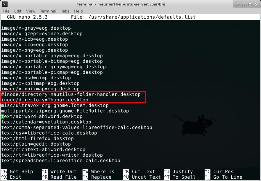 OS : Ubuntu 16.04 LTS DE : XFCE 4.12 Web browser : Firefox Quantum 57.0.1 Description : On opening downloaded files folder in Firefox, it calls Nautilus instead of Thunar. It also changes my wallpaper by the default environment. (see attached clip) Firefox claims this is not a bug from Firefox but file manager. As temporary fix, I found replacing the line calling Nautilus by Thunar in /usr/share/applications/defaults.list worked. Should XFCE replace this line on installation ? (see attached picture).