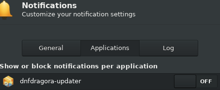 Created attachment 7509 Application dnfdragora-updater inactivated. Description of problem: Icons dnfdragora-updater (attachment 7508 ) persist to show themselves in the Notification area while application is inactivated in Notifications. Steps to Reproduce: 1. In item Notifications, inactivate the application dnfdragora-updater (attachment). 2. log out and log in back to the session. Actual results: Icons dnfdragora-updater persist to show in the Notification area while it should not. Expected results: Icons dnfdragora-updater should not show themselves in that case in the Notification area.