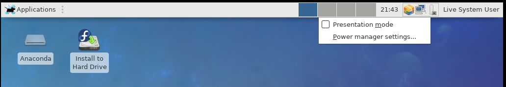Created attachment 7600 screenshot from F27 live CD please see the attachment. presentation mode is not "on" by default.