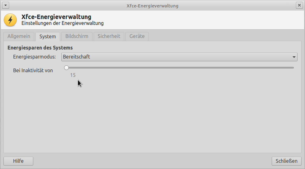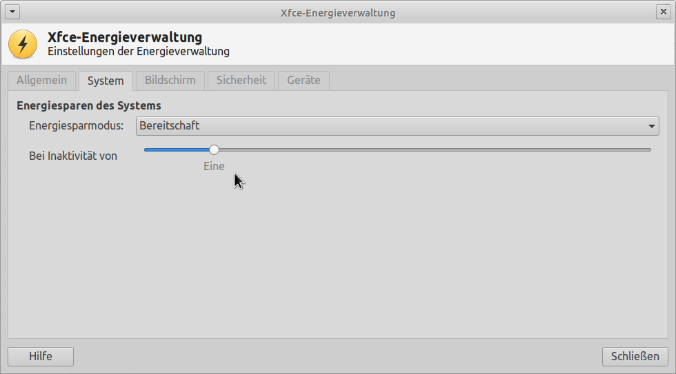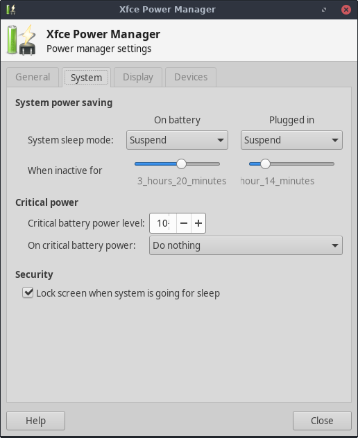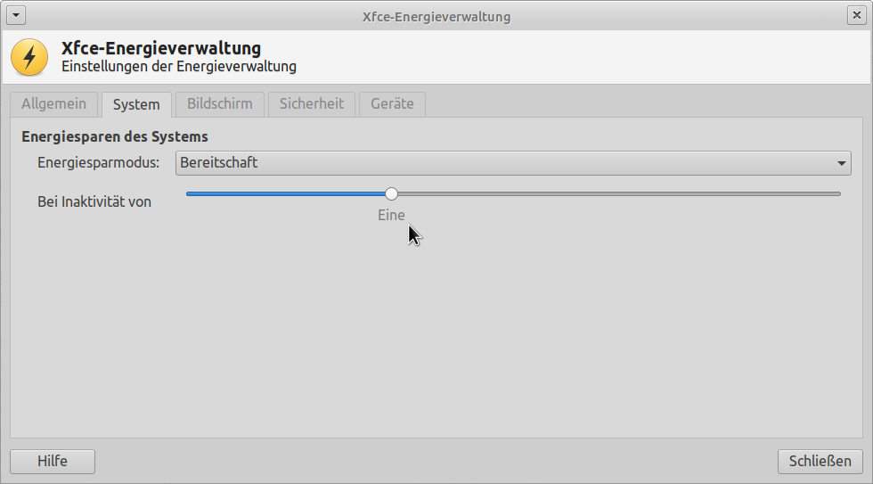 Similar issue: $ xfce4-power-manager-settings -V This is xfce4-power-manager version 1.6.1, running on Xfce 4.12. Built with GTK+ 3.22.26, linked with GTK+ 3.22.30. The values displayed for the slider "system-sleep-inactivity-on-battery" are as follows: Never, 15, 16, ..., 58, 59, One, One, ..., One, 2 hours, 2, ..., 2, 3 hours, 3, ..., 3, 4 hours, 4, ..., 4, 5 hours, 5, 5, ... I would expect the following values: Never, 15 minutes, 16 minutes, ..., 59 minutes, One hour, One hour one minute, One hour 2 minutes, ..., One hour 59 minutes, 2 hours, ...