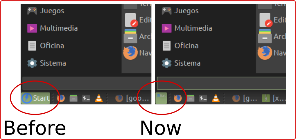 Created attachment 7814 ****** The word "Start" is part of the PNG image, it is not the "Icon and title" option ****** I want to change the icon in the "start" button, but when I change it for a custom image, the button does not fit the length of the image, which could be done in previous versions. My version is 2.2.0. I want to say: previously if I wanted to apply a rectangular image on the "start" button, it would fit along the image without problems. Now, the image is reduced within a square being very small. Thanks to you and Google translator!