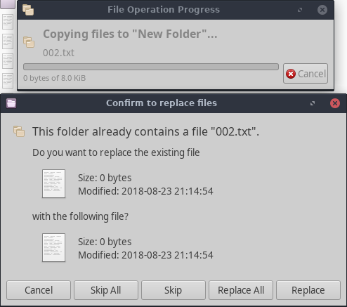 Created attachment 7902 screenshot In my tests, only the filename is displayed in both dialogs. How is the copy dialog more useful than the confirmation one? The screenshot was taken from Thunar 1.8.1, but the behavior is the same with 1.6.15.