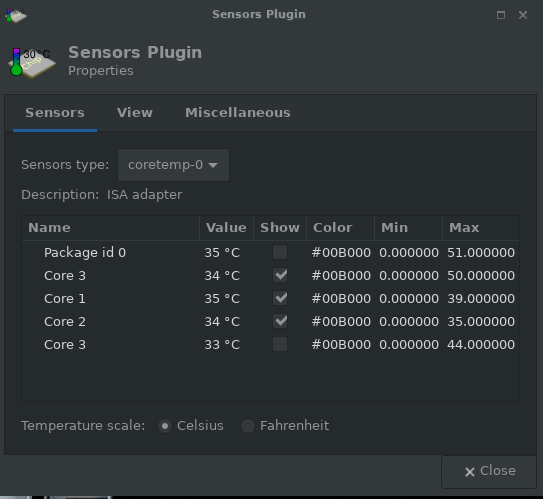 Created attachment 7923 Screen shot of the incorrect sensors enumeration for the CPU Previous to an update the sensors plugin worked correctly. Now however, my 4 core Intel processor is enumerated as: Core 3 Core 1 Core 2 Core 3 And by default only the first three are checked when xfce4 starts. Please see screen shot for more information.