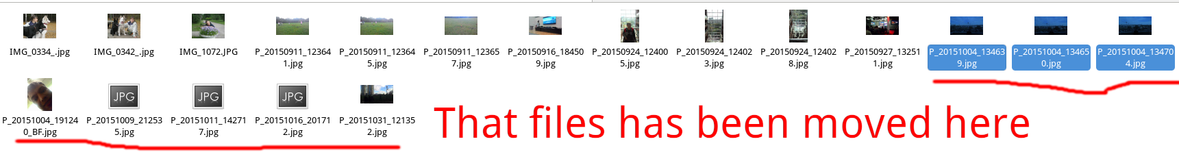 As reported in Bug 14753, not all moved files are not selected in the destination folder.