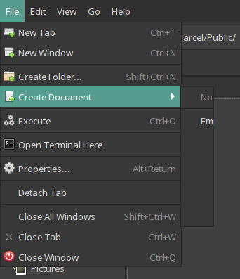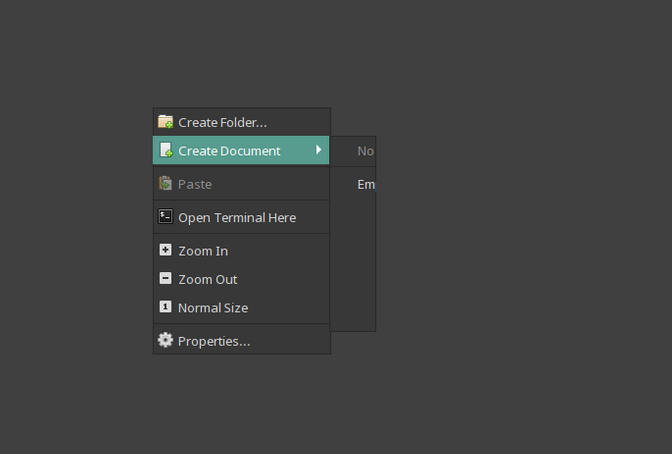 Created attachment 8373 screenshot of context menu Steps to reproduce: 1. open Thunar 2. Right Click to open menu 3. Select Create Document Expected behavior: Menu to create empty file should be visible Actual behavior: Menu to create empty text file is NOT visible or partially visible. See screenshot for details. Distro: openSUSE Tumbleweed snapshot 20190327