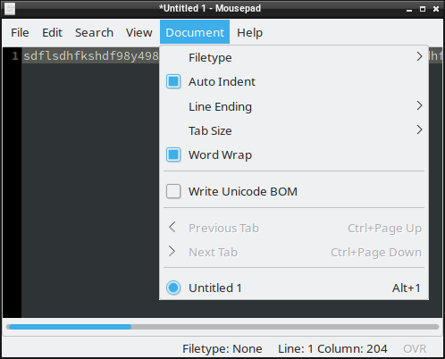 -- GitLab Migration Automatic Message -- This bug has been migrated to xfce.org's GitLab instance and has been closed from further activity. You can subscribe and participate further through the new bug through this link to our GitLab instance: https://gitlab.xfce.org/apps/mousepad/-/issues/29. Please create an account or use an existing account on one of our supported OAuth providers. If you want to fork to submit patches and merge requests please continue reading here: https://docs.xfce.org/contribute/dev/git/start#gitlab_forks_and_merge_requests Also feel free to reach out to us on the mailing list https://mail.xfce.org/mailman/listinfo/xfce4-dev