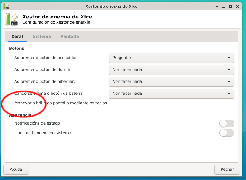 Created attachment 8825 No checkbox for text Handle display brightness keys Hello: Xfce 4.14 pre3 No checkbox for text Handle display brightness keys See image attached. Very thanks. Best regards.