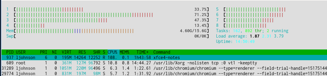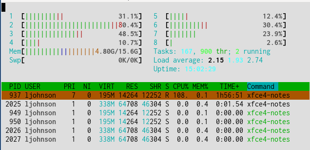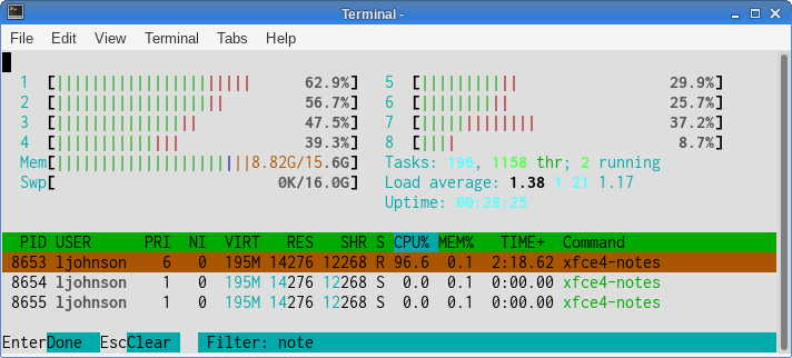 Created attachment 8953 htop filtered by 'note' showing ranked by %CPU
