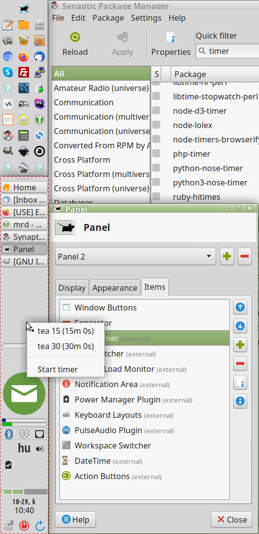 Created attachment 9161 The plugin starts from the mouse pointer! The timer line is surrounding really wide "separator" like lines on both sides. Check the screenshot! This way the plugin takes up about 10 times more space on the screen than needed. Please take into consideration to show this plugin the same way as the System Load Monitor appears. You can see it on the screenshot as well.