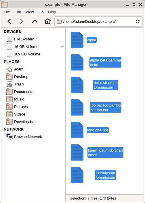 Created attachment 9169 xfce-4.14-text-beside-icons-misaligned.png When Edit/Preferences/Display/Text beside icons is set, the filename is not aligned well when it is multi-line, see the attached screenshot. Single line filenames are correctly aligned to the left, while multiline are centered in some predefined maximal width. In XFCE 4.12, the filenames were always aligned to the left. I think this bug has the same root as bug 16075. Steps to reproduce: 1) create some dir, e.g. Desktop/example 2) create e.g. the following files: $ touch "alpha" "long one line" "alpha beta gamma delta" "dolor sit amen loremipsum" "foo bar foo bar foo bar foo bar" "lorem ipsum dolor sit amen" "loremipsum loremipsum" 3) open thunar in Desktop/example and make thunar window narrow (one icon per line) to observe the misalignment