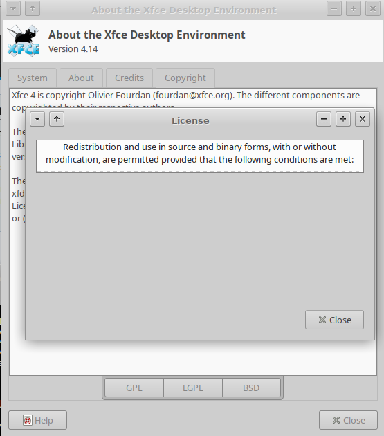 Created attachment 9300 Attached screenshot. The License text box in xfce4-about -> "Copyright" -> "GPL", "LGPL", and "BSD" buttons is too small. See attached screenshot.
