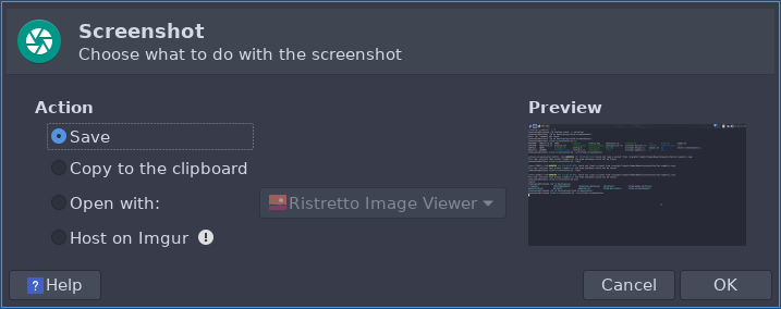 It has happened more than once to me that I accidentally chose Imgur though I'd never use it. Luckily I always noticed it and were able to cancel or delete it, but there are others which ran into the same situation. Hence it would be a nice idea, if the whole Imgur functionality could be disabled by a simple switch in a configuration file (should be quite easy to implement) or in the GUI itself. See also this discussion: http://forum.xfce.org/viewtopic.php?id=13730