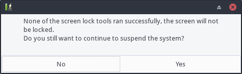 Created attachment 9598 Screenshot of window showing inablility to suspend With xfce4-power-manager 1.6.6 on Fedora 31 running xfce 4.14, I am experiencing sudden and random screen locking. On the other hand, the system would not suspend and fail with the message with the attached screenshot. I have attached output from "xfce4-power-manager --no-daemon --debug" to aid in troubleshooting this. Here are the versions of some related components - upower 0.99.11 xfce4-session 4.14.1 xfce4-screensaver 0.1.8