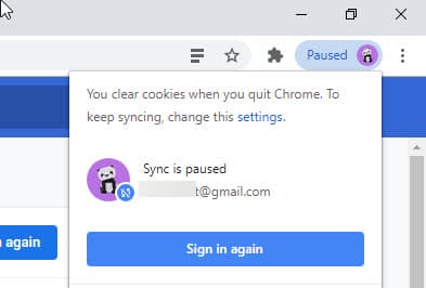 Created attachment 9719 Google Chrome - Sync is paused Every time I launch Google chrome on XFCE, I need to re-login. Toolbar has the icon that says "Paused", then the pop-up dialog says "Sync is paused". How can I fix this? This doesn't happen with Mozilla Firefox.