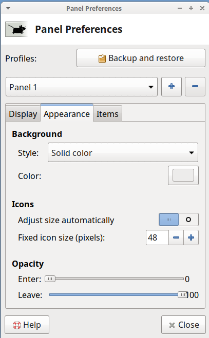 Created attachment 9811 Panel Appearance tab Panel Appearance tab settings
