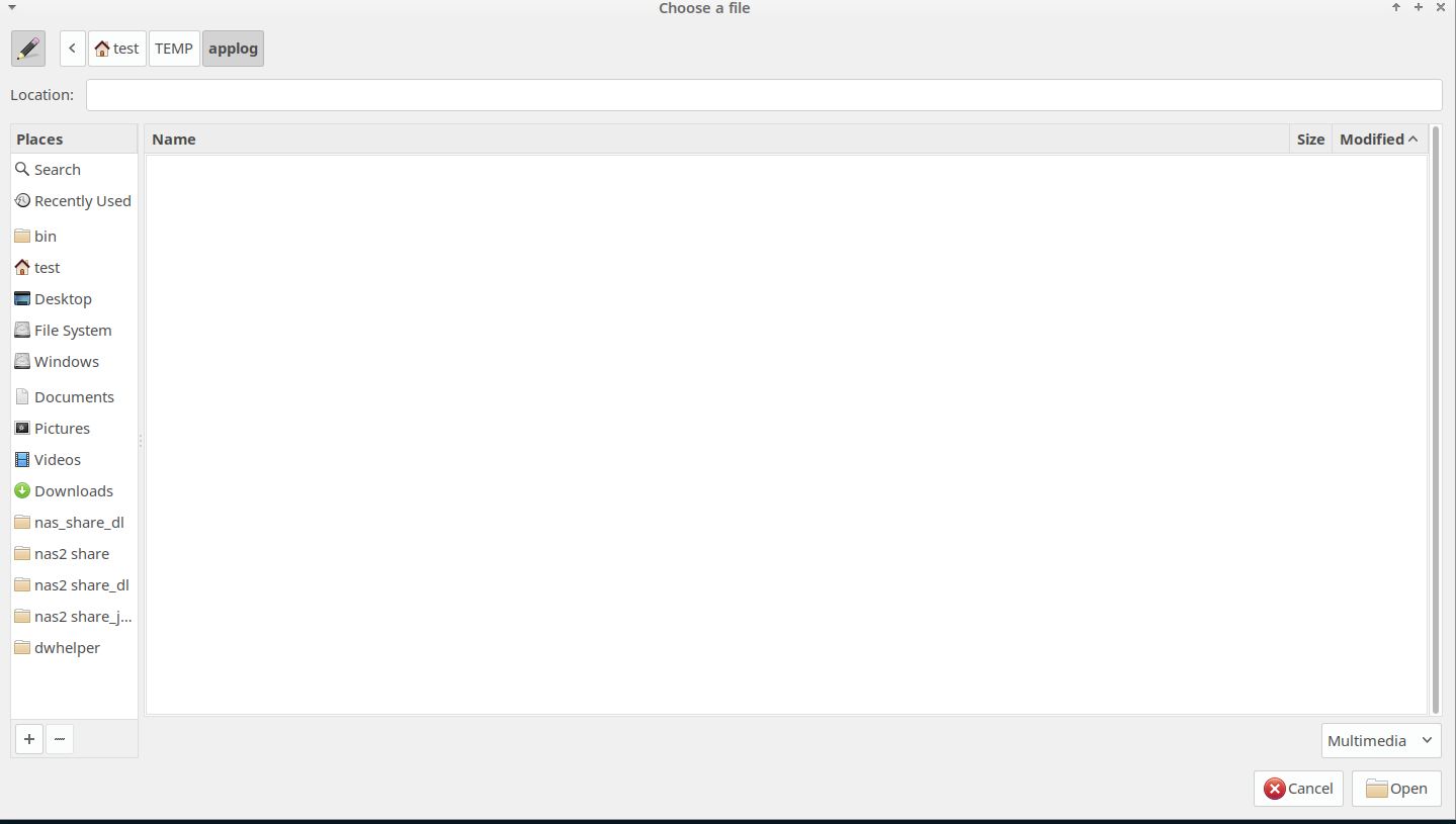 Thats a GtkFileChooser dialog: https://developer.gnome.org/gtk2/stable/GtkFileChooserDialog.html That is a bit surprising for me, since afaik SMPlayer is a qt application.. In any case, that dialog is not part of Thunar, so I will close the bug. You can report bugs with that dialog here: https://gitlab.gnome.org/GNOME/gtk (Best first search if such a bug already exists)