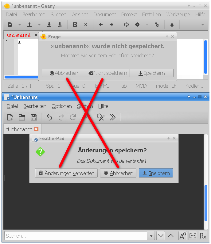 Created attachment 9898 programs do position their buttons on different positions This is not a bug report, but a enhancement request. Problem: ----------- Different programs do position "yes", "no" and "cancel" buttons on different places. (I have a picture attached with an example.) This is an annoyance because we must remember, to always read what is written on the buttons first, and cannot routinely just press the middle button automatically to "cancel". We must always be alert, because it can always be different. This slows down the flow of work. So what is my request? ----------------------------- In Xfce we can already customize the position of buttons in the title bar system-wide. (See attached picture.) My suggestion is, to just add a setting where we can also customize, where the buttons "yes", "no" and "cancel" should be placed system wide.