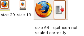 User-Agent: Mozilla/5.0 (X11; U; Linux x86_64; en-US; rv:1.8.1.3) Gecko/20061201 Firefox/2.0.0.3 (Ubuntu-feisty) Build Identifier: I have a launcher button that uses a 128x128 PNG image as an icon. When the button is alone in the panel, resizing the panel makes the button resize and keep its proportions. When I add a "quit" action button, I see the follwing behavior: (I have nothing else on the panel) * When the panel size is about 29px, both buttons are as square as the icon. * When the panel size is above 29px, the quit button loses its square shape and its width is usually smaller than its height. * When the panel size is smaller than 29px, the first button loses its square shape and its width is usually smaller than its height This causes icons to be needlessly squashed, and not be as tall as the panel. Reproducible: Always Steps to Reproduce: 1. Create a new panel 2. Add a launcher button with an icon sized 128x128. 3. Add an "Action Buttons" applet and display the "quit" button 4. resize the panel See attached screenshot.