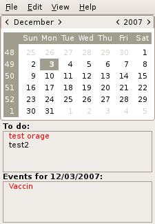 Hi, I've written a patch against SVN r26654, which makes the todo list a bit nicer (in my opinion... ;) and adds the list of events for the selected day beneath it when possible. If you like it, I'd love to have it integrated! :)