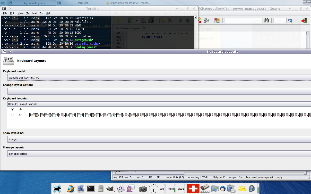 (In reply to comment #2) > That looks nasty. > > What is your locale setting? > > To what language does the 'ar' layout correspond? Is it arabic? Yes it's arabic, i removed the ara in xorg.conf keeping only ch layout and then i have no problem if i add the arabic layout in xkb settings. my locale is en_US.ISO8859-2 / is the one i found to display french and arabic characters correctly.