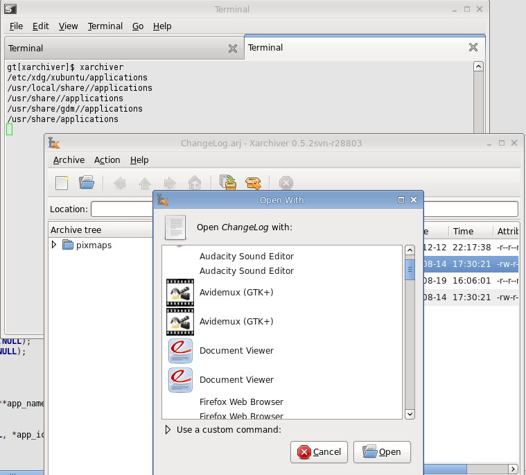 $ xarchiver file.tar.gz /usr/shareapplications /usr/local/shareapplications /usr/share/gdm/applications $ echo $XDG_DATA_DIRS /usr/share:/usr/local/share:/usr/share/gdm/