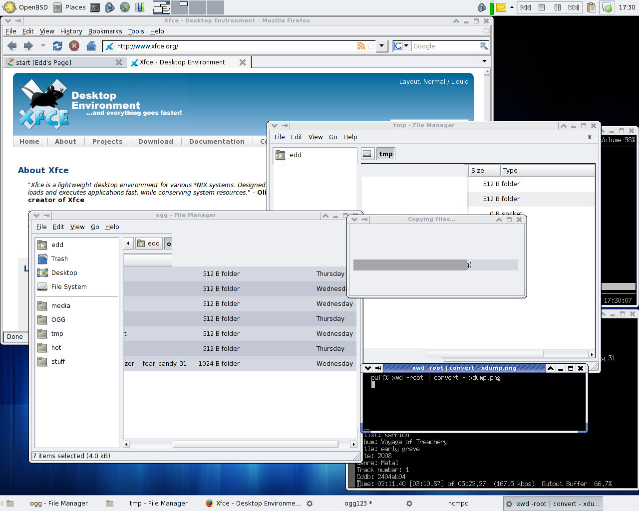 Created attachment 2091 Screenshot showing the bug Hi, When I copy a folder with some fairly large files in (in my test a folder containing some OGG Vorbis files), the file manager windows and progress bar windows lock up. After a while the progress window dissappears and the file manager windows update and continue to work. It makes thunar feel horrible for me, which is a shame as the rest of the XFCE stuff is so good. This sounds like something to do with threading? Perhaps the GUI needs to be updated more often, but then I am no expert. I attach a screen-shot showing the bug. This was on Thunar-0.9.3, on OpenBSD-4.4-current/i386 (2 machines here display this behavior). If this has been fixed in SVN, can we please have a patch, so we can back-port it. I am in contact with the port maintainer and can send him a diff against the current port in the OpenBSD tree. Thanks